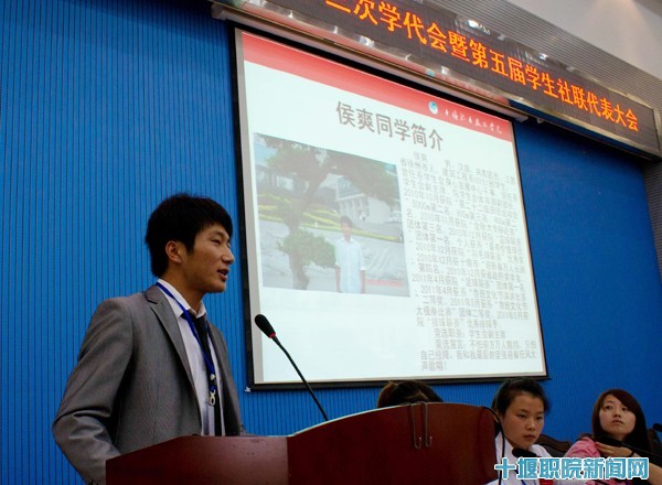 大会审议并通过《十堰职业技术学院学生会章程》、《十堰职业技术学院学生社团联合会章程》。听取并审议了杜威同学代表大会主席团及代表提案审查委员会所做的《关于十堰职业技术学院第十三次学代会暨第五届学生社联代表大会代表提案审理情况的报告》、高艳林同学代表十堰职业技术学院第四届学生社团联合会所作的题为《创先争优 团结奋进 打造品牌社团》的工作报告以及沈飞同学代表十堰职业技术学院第十二届学生委员会所作的《继承传统 锐意创新. 服务同学. 努力抒写新时期学生会工作的新篇章》的工作报告,总结和吸取了Beat365官网一年多来的学生会、社团工作成果和经验教训,展望了学生会、社团的未来,使学生会、社团建设更规范、更有生机活力。