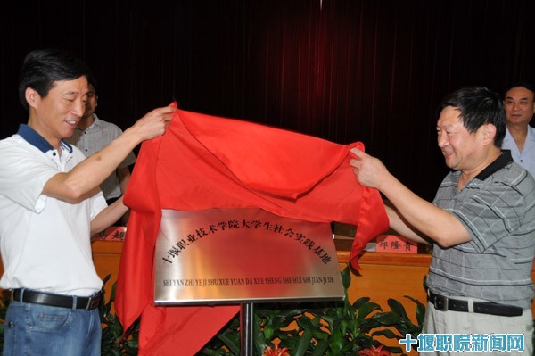 仪式上,我院党委副书记李晋向首批赴国税局实习的26名学生授旗,郑隆贵副局长向国税干部授旗。李晋与郑隆贵共同为“十堰职业技术学院大学生社会实践基地”揭牌。