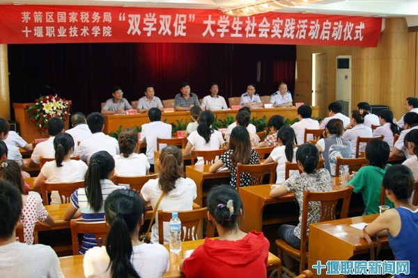 628上午,十堰职院与茅箭区国税局联合开展的“双学双促”大学生社会实践活动正式启动。