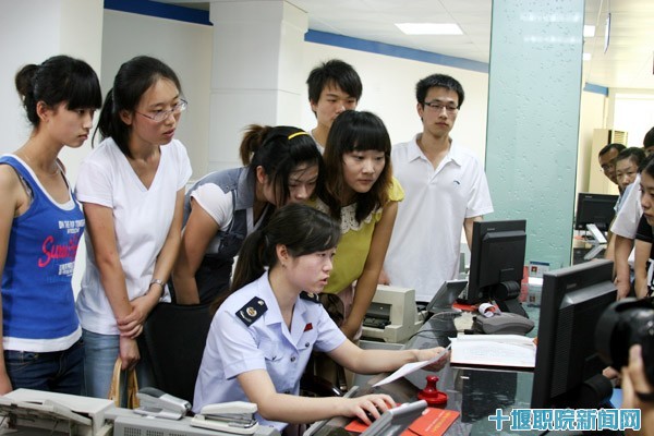 仪式结束后,首批经济贸易系26名优秀会计专业学生来到茅箭区国税局办税大厅观摩了解工作场所和相关业务。这些学生将利用暑假时间分组在茅箭区国税局办税大厅、税源一科进行为期一个月的顶岗实习,与税务干部结对亲历税收一线工作,提高其实践能力和综合素质。