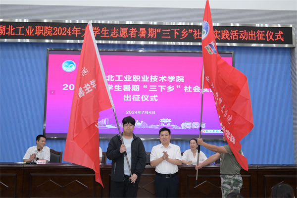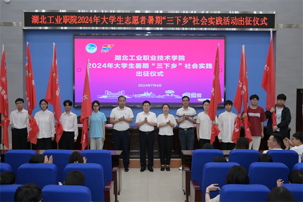 新闻网讯(文/玉声 图/姚堃)“暑期‘三下乡’,我们来了!”伴随着欢呼声,Beat365官方网站25支大学生志愿者暑期“三下乡”队伍正式出征。7月4日晚,湖北工业职院2024年大学生志愿者暑期“三下乡”出征仪式在学术报告厅举行。校党委委员、副校长胡昌龙和校团委、马克思主义学院、创新创业学院主要负责人,以及160多名暑期实践团队师生代表参会。