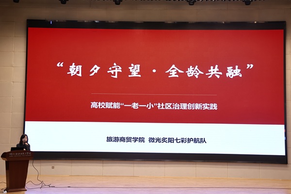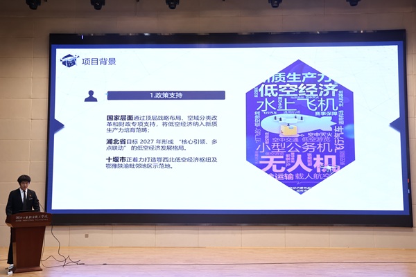 团队展演环节,来自各个二级学院的团队代表依次上台,通过生动的讲述、丰富的图片与视频素材,再现暑期实践的精彩瞬间。艺术设计学院“为爱艺行志愿服务队”在十堰市茅箭区黎明社区以艺术课堂点亮童心,将环保理念融入创作;生态环境学院“绿江环保队”扎根丹江口市均县镇,以专业行动守护南水北调水源地;马克思主义学院“红土青创”社会实践团走进江西井冈山,探索红色文旅与乡村振兴的融合路径;机电工程学院“低空飞行科普实践团”紧扣 “低空经济” 国家政策热点,充分发挥专业优势,深入十堰市经开区天津路社区开展低空飞行科普志愿服务……19支队伍的实践故事各有温度、各有力量,共同诠释着“服务社会、奉献青春”的初心,赢得现场阵阵掌声。