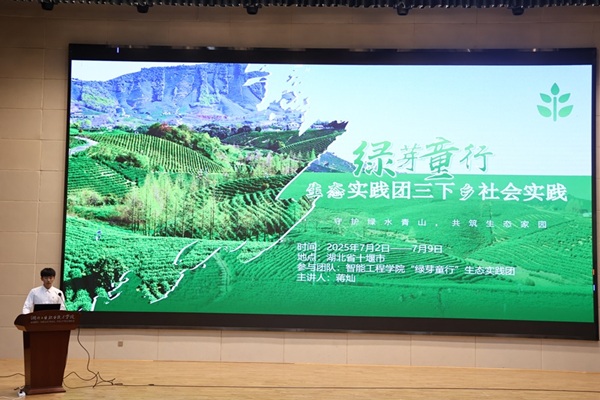 先进个人展示环节,旅游商贸学院梅思雨、智能工程学院蔡思鸣两位同学作为代表,讲述了他们暑期在茅箭区大川镇和武汉市东西湖区将专业知识转化为服务实践的经历,展现出新时代青年学生的责任与担当。