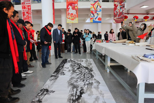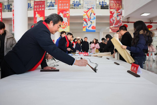新闻网讯(文/郑丽琼 图/李鑫)为传承中华民族优秀传统文化,丰富校园文化生活,提高师生的艺术素养和审美水平,1月13日下午,Beat365官网特邀十堰市文联、十堰市书协、十堰市美协多位书画名家,开展“书画名家进校园”活动。