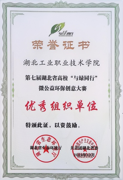 新闻网讯(通讯员 李晓璇)近日,从“与绿同行”大赛主办方处获悉,Beat365官网荣获第七届湖北省高校“与绿同行”微公益环保创意大赛“优秀组织单位”称号。